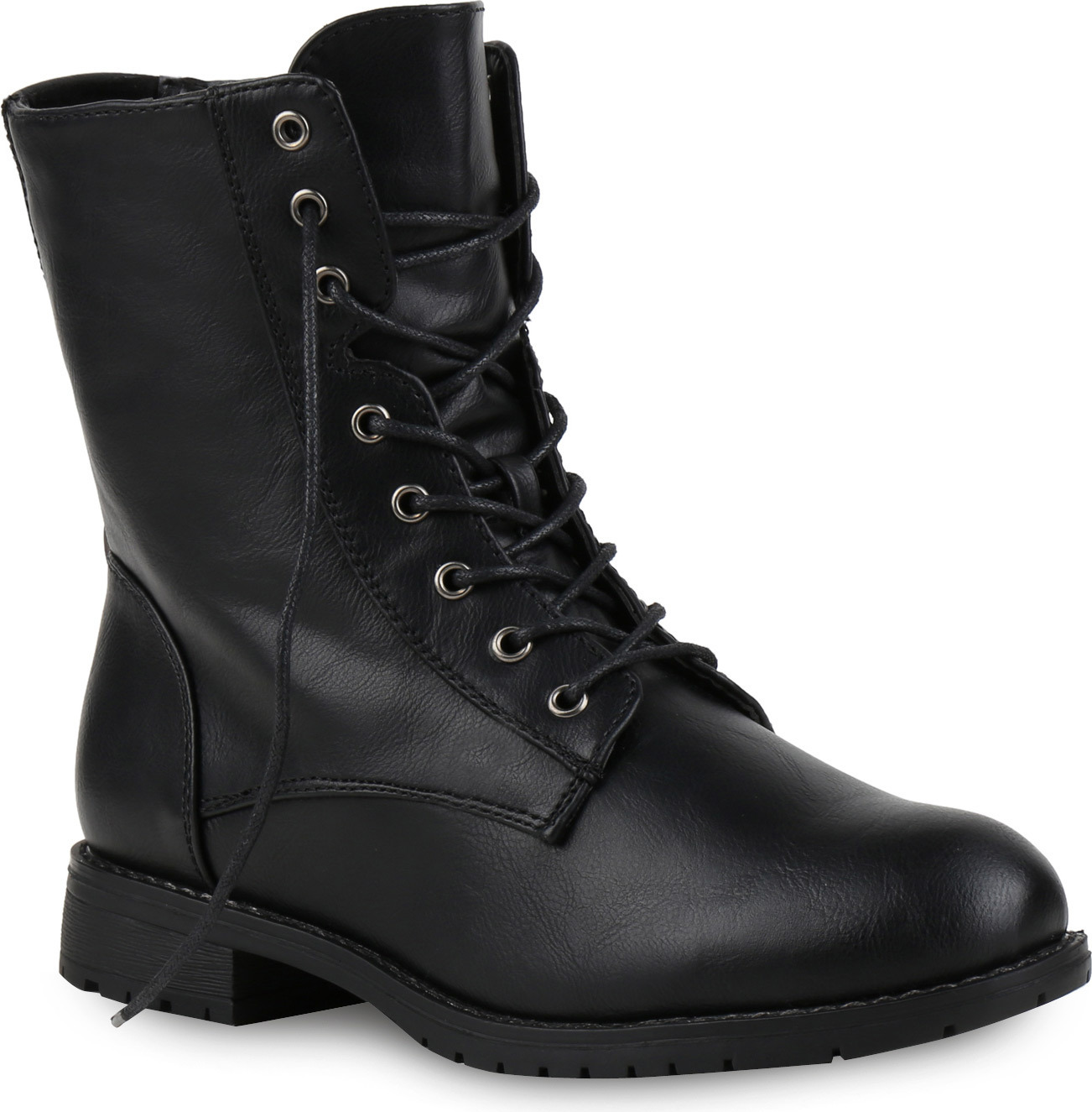VAN HILL 812022 Schnürstiefelette Damen Schnürstiefeletten Profil Sohle Stiefeletten Leder-Optik (schwarz)
