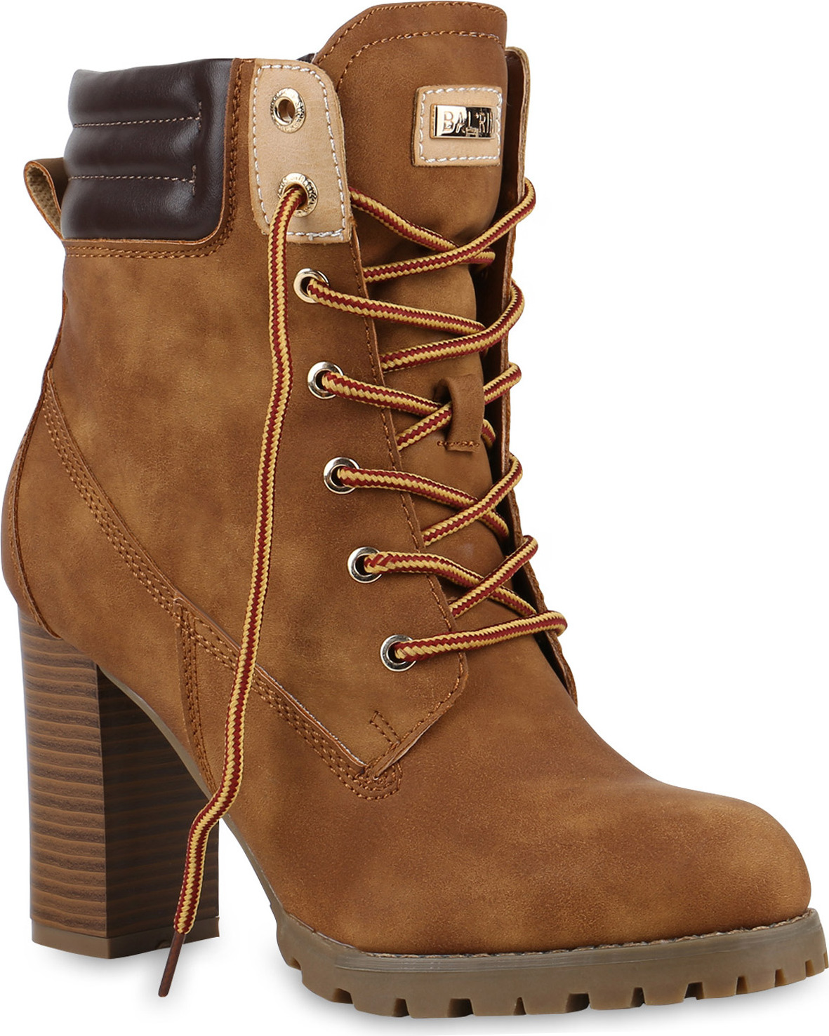 VAN HILL 812259 Schnürstiefelette Damen Schnürstiefeletten Worker Boots Stiefeletten Block Absatz (braun)