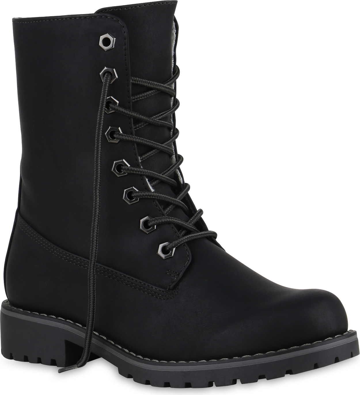 VAN HILL 813135 Schnürstiefelette Schnürstiefeletten Damen Warm Gefütterte Stiefeletten Stiefel (schwarz)