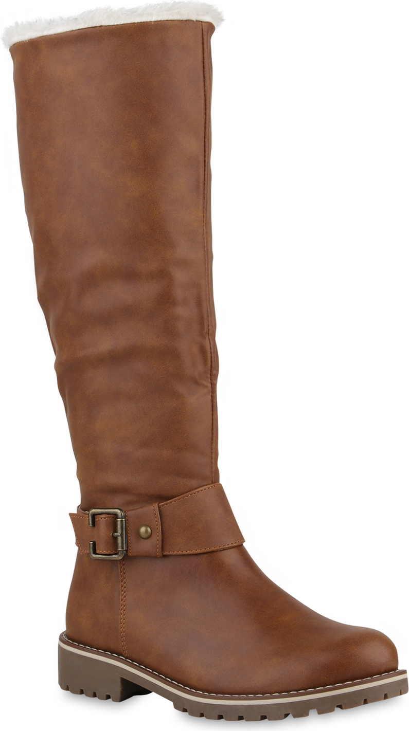 VAN HILL 813736 Stiefel Warm Gefütterte Damen Stiefel Biker Boots Winter Bikerstiefel (braun)