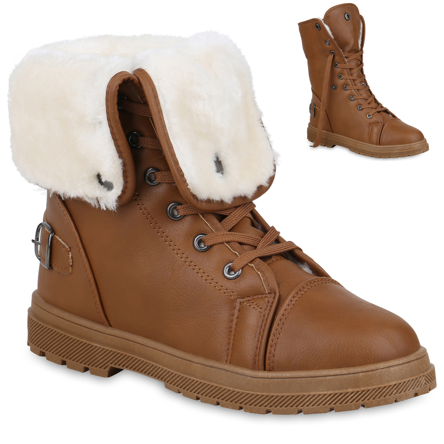 VAN HILL 813745 Stiefelette Warm Gefütterte Damen Stiefeletten Worker Boots Outdoor (braun)
