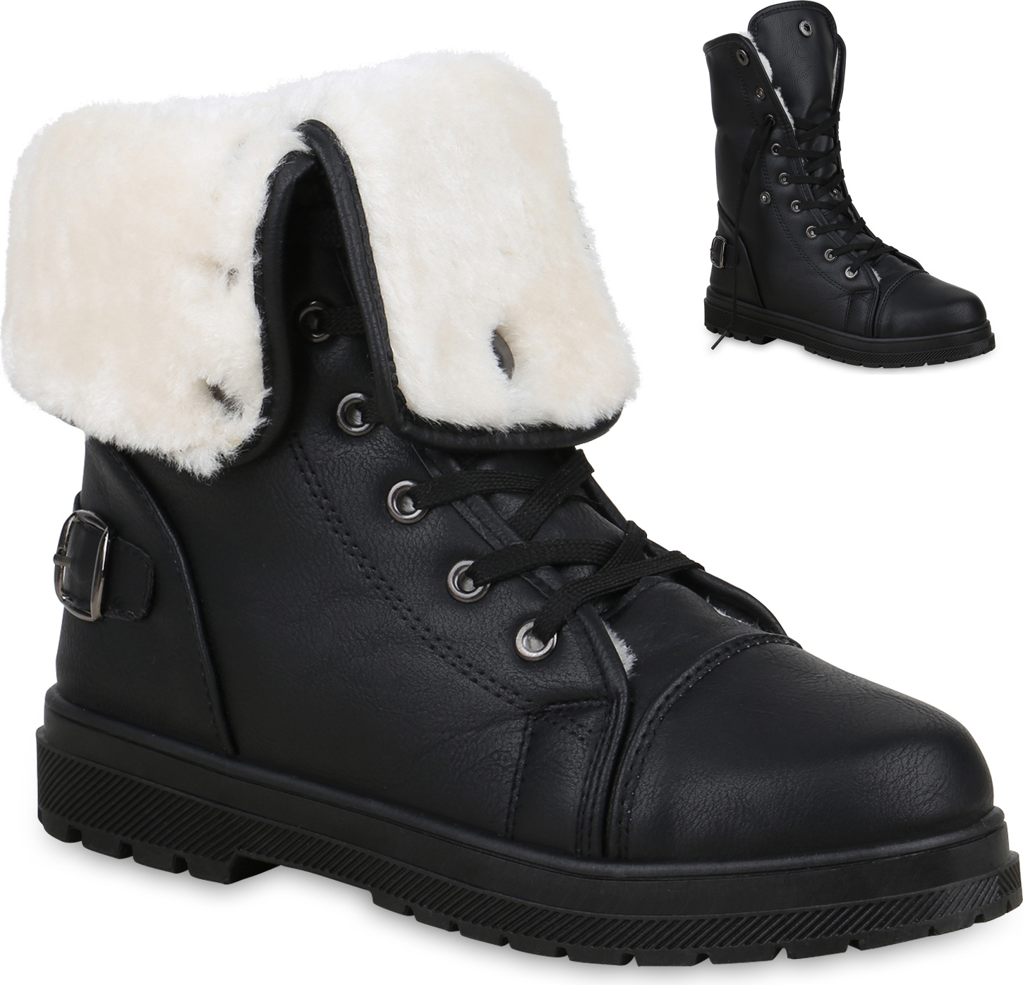 VAN HILL 813745 Stiefelette Warm Gefütterte Damen Stiefeletten Worker Boots Outdoor (schwarz)