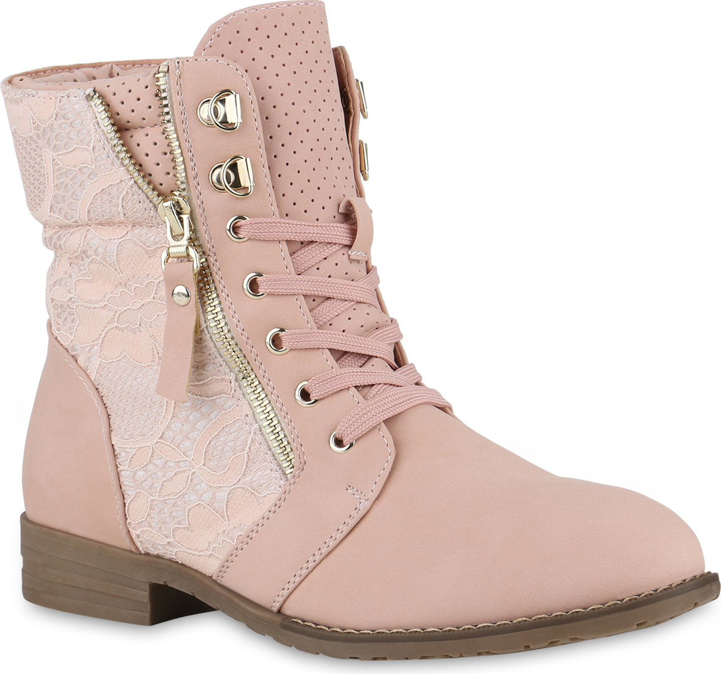 VAN HILL 815442 Schnürstiefelette Damen Schnürstiefeletten Spitze Stiefeletten Zipper Worker Boot (rosa)