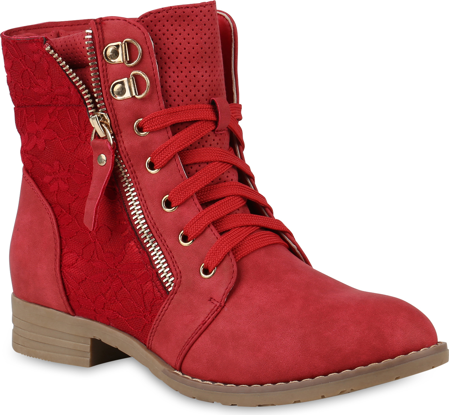 VAN HILL 815442 Schnürstiefelette Damen Schnürstiefeletten Spitze Stiefeletten Zipper Worker Boot (rot)