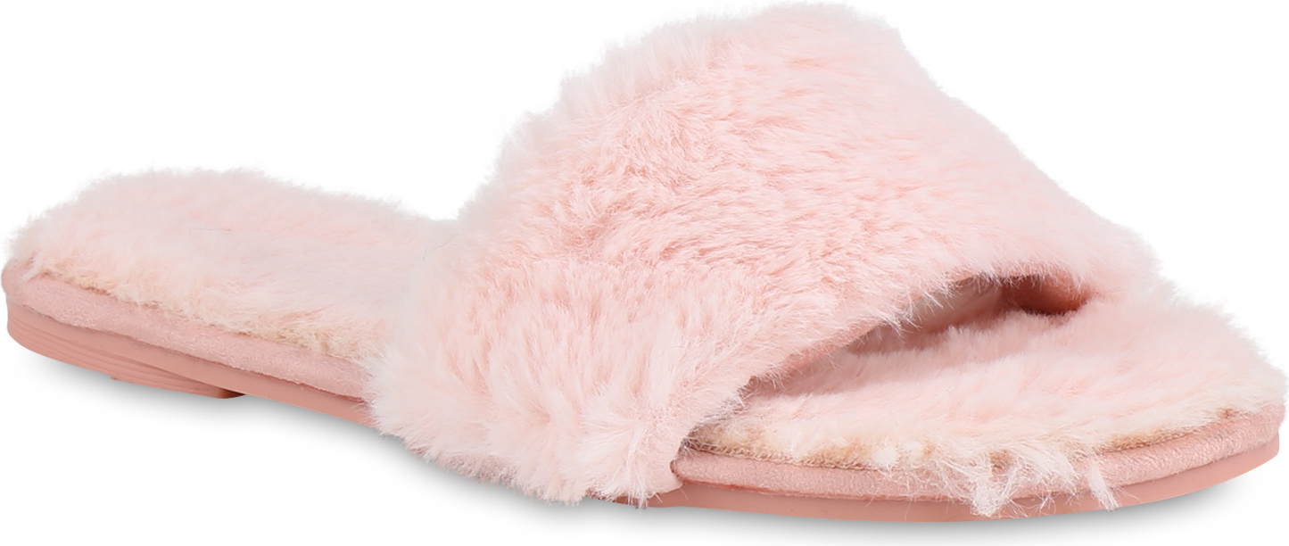 VAN HILL 818527 Pantolette Damen Sandalen Kunstfell Pantoletten Warm Gefütterte Hausschuhe (rosa)