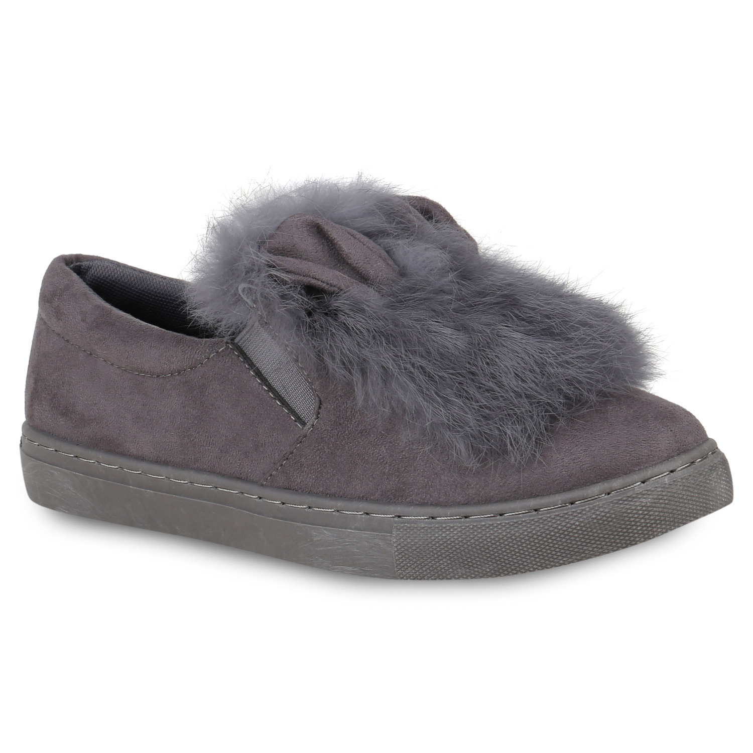 VAN HILL 820228 Slip-On Sneaker Damen Sneaker Low Slip Ons Fell Turnschuhe Wildleder-Optik (grau)