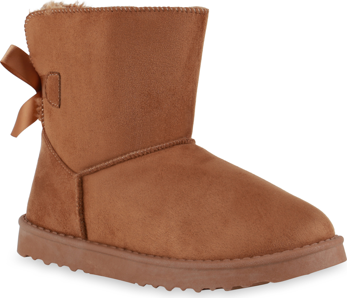 VAN HILL 824965 Schlupfboots Damen Stiefeletten Schlupfstiefel Warm Gefütterte Stiefel Schleife (braun)