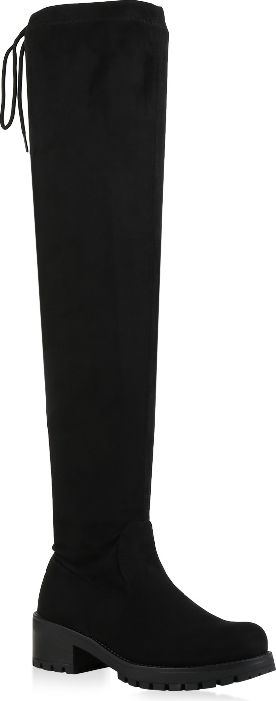 VAN HILL 831540 Overkneestiefel Damen Overknees Leicht Gefütterte Stiefel Veloursleder-Optik Boots (schwarz)