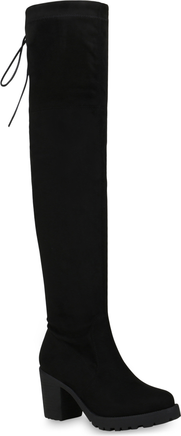 VAN HILL 833657 Overkneestiefel Damen Overknees Leicht Gefütterte Stiefel Wildleder-Optik Boots (schwarz)