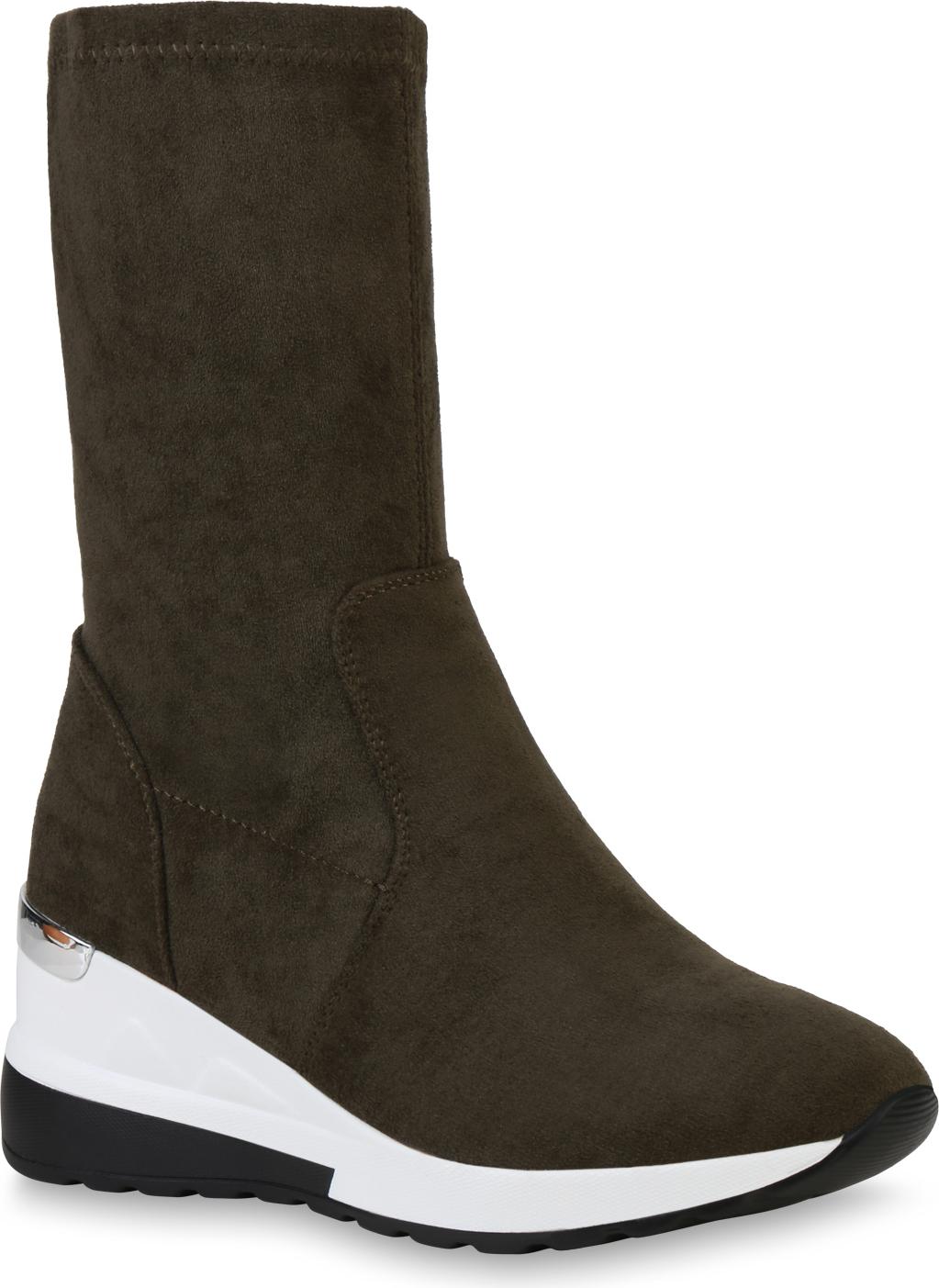 VAN HILL 835551 Pumps Damen Stiefel Leicht Gefüttert Keilstiefel Profil-Sohle (grün)