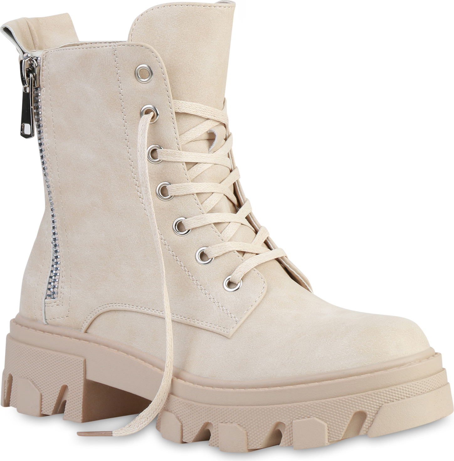 VAN HILL 835653 Plateaustiefelette Damen Stiefeletten Plateau Boots Kroko Zipper Blockabsatz Schnürer (beige)