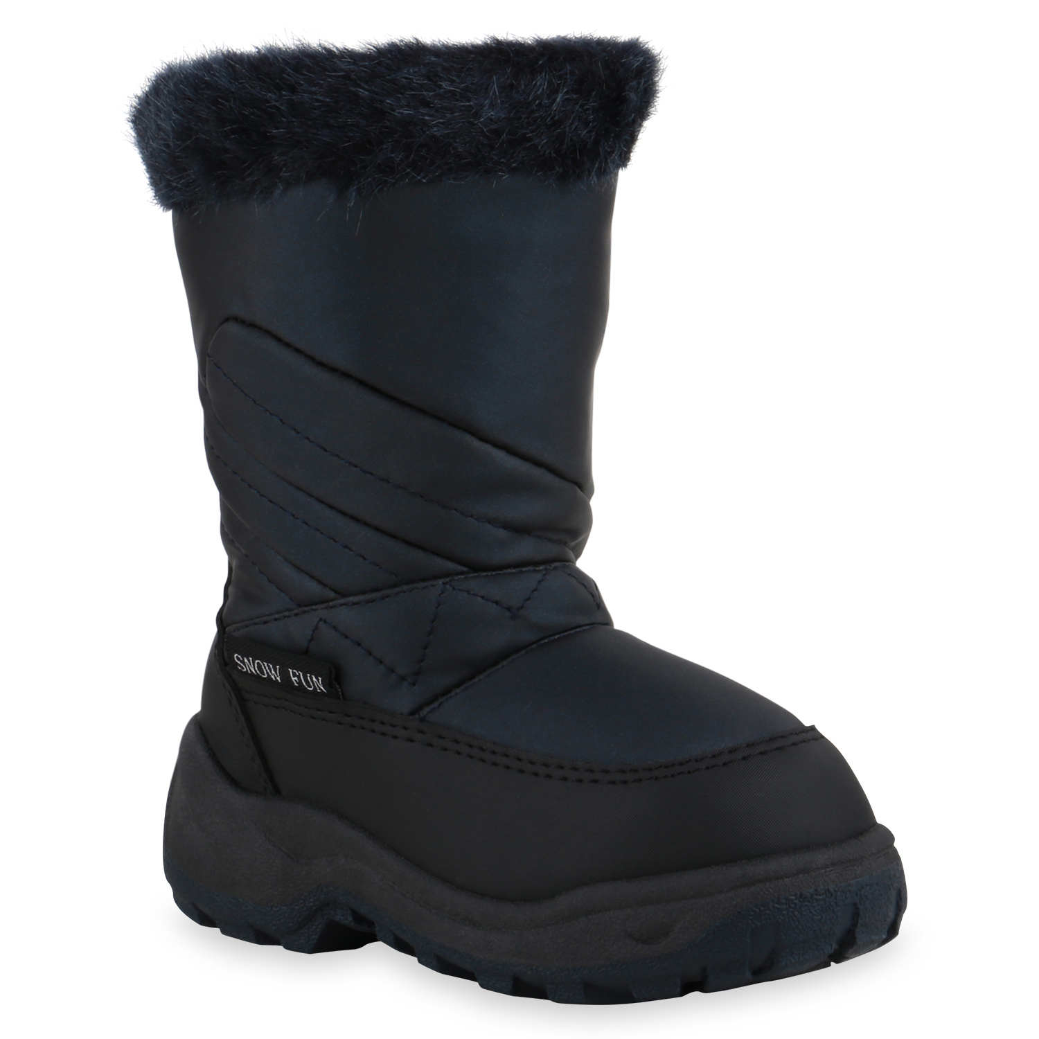 VAN HILL 836086 Winterboots Kinder Warm Gefütterte Winter Boots Bequeme Kunstfell (blau/bunt/schwarz)