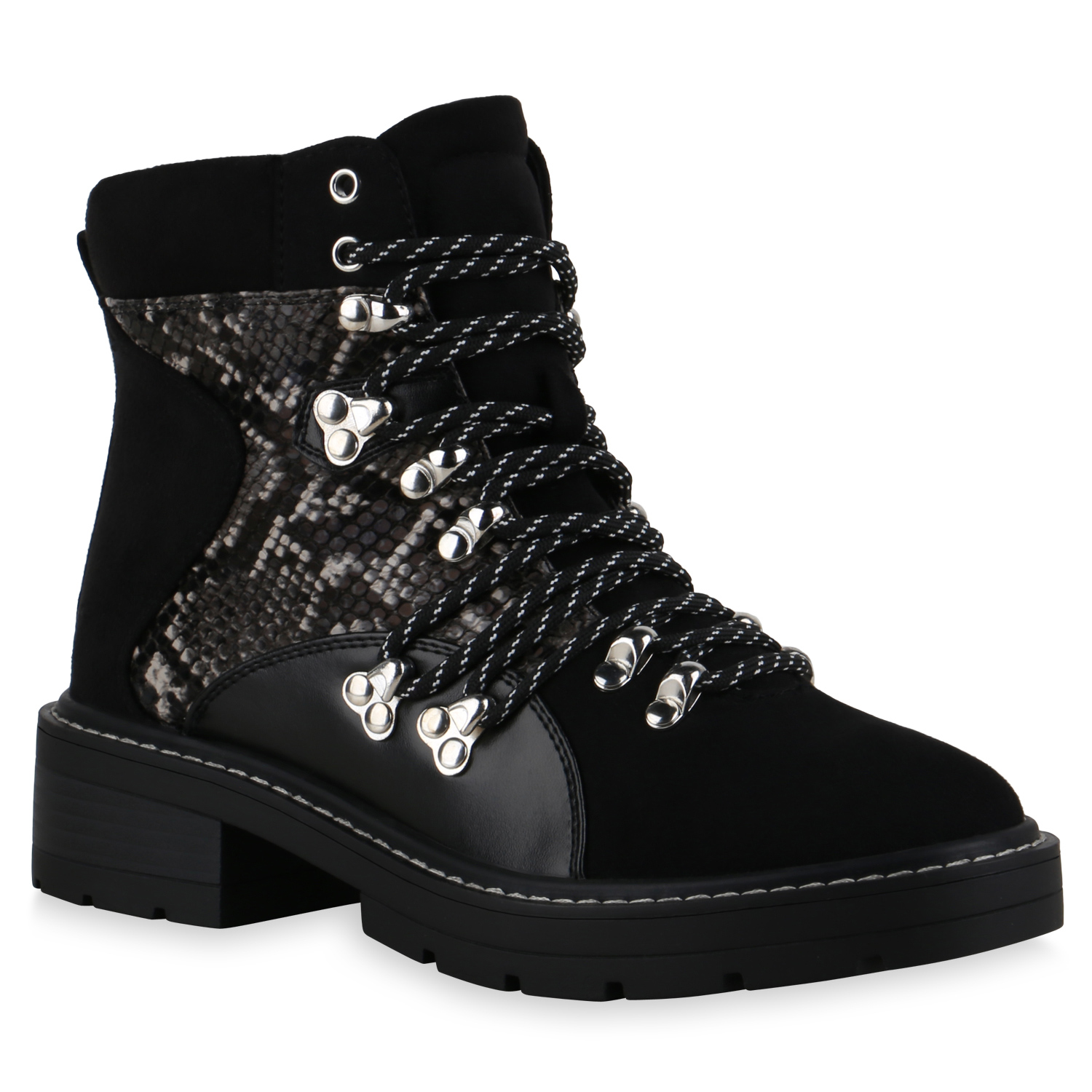 VAN HILL 836204 Schnürstiefelette Damen Stiefeletten Schnürstiefeletten Prints Outdoor (bunt/grau/schwarz)