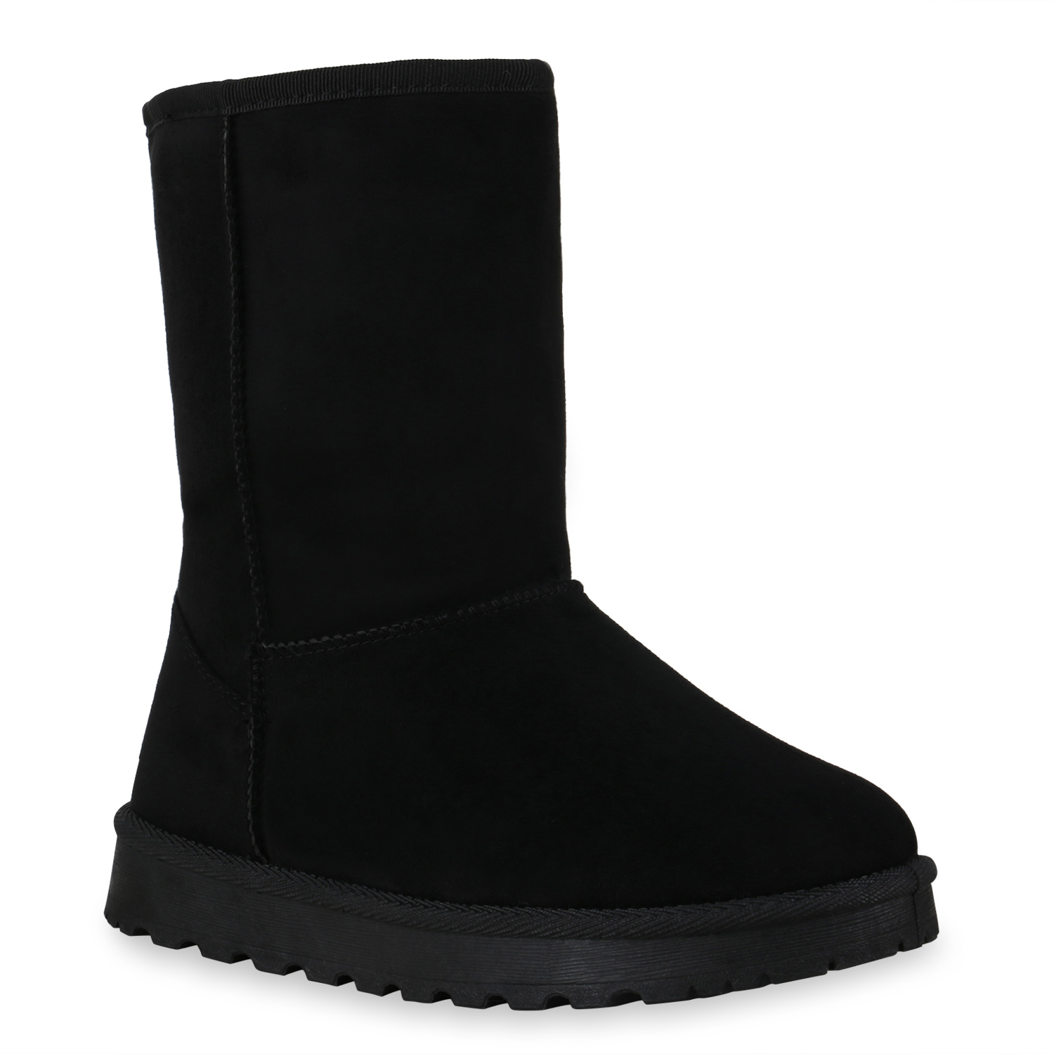 VAN HILL 836446 Schlupfboots Damen Warm Gefütterte Schlupfstiefeletten Profil-Sohle (schwarz)