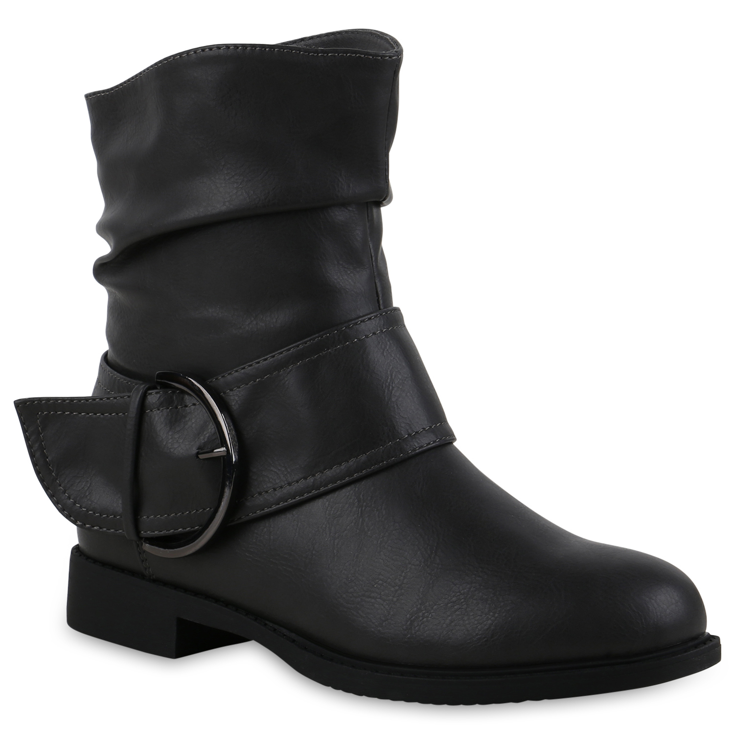 VAN HILL 837602 Schlupfboots Damen Leicht Gefütterte Schlupfstiefeletten Schnallen (grau)