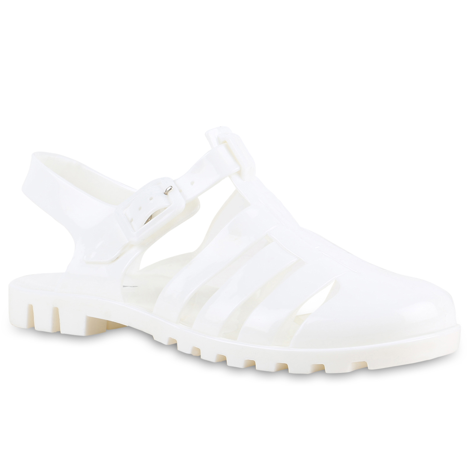 VAN HILL 837646 Pantolette Damen Sandalen Pantoletten Bequeme Lack Cut-Outs Bade- (weiß)