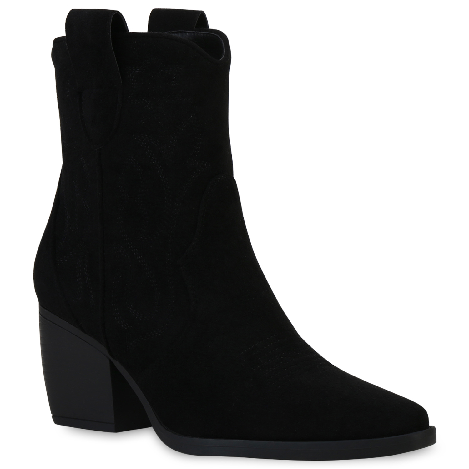 VAN HILL 837779 Cowboy Boots Damen Stiefeletten Cowboy Boots Trichterabsatz Stickereien (schwarz)