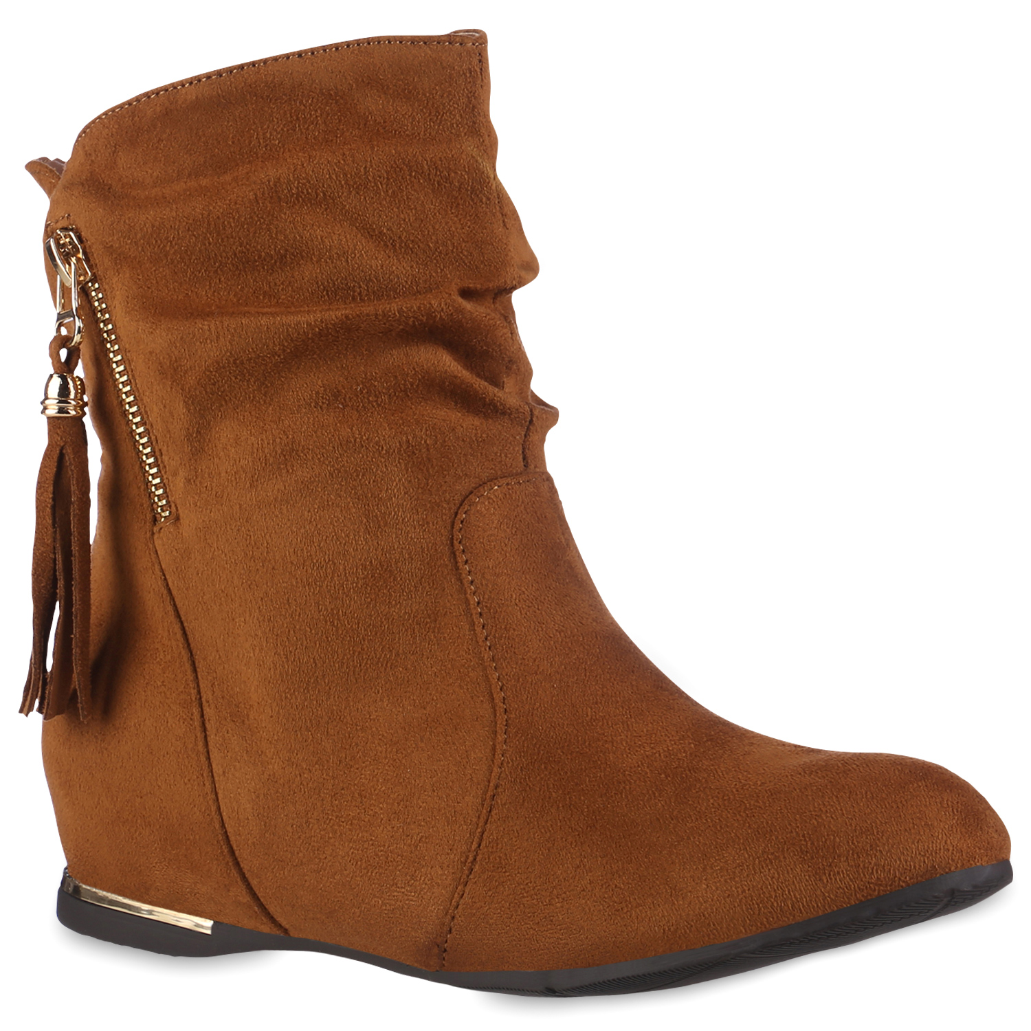 VAN HILL 837871 Schlupfboots Damen Schlupfstiefeletten Stiefeletten Keilabsatz Quasten (braun)