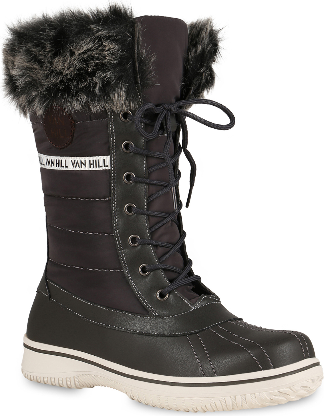 VAN HILL 838030 Winterstiefel Warm Gefütterte Damen Stiefeletten Winterboots Stiefel (grau)