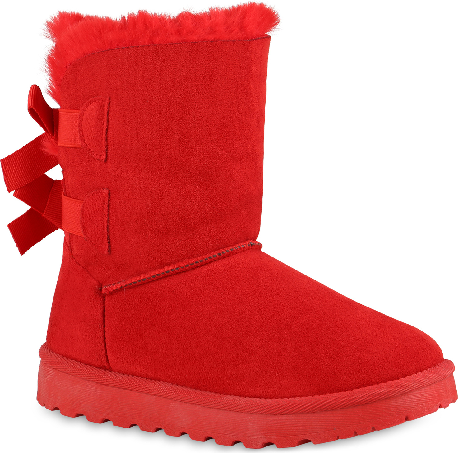 VAN HILL 838098 Winterstiefelette Damen Warm Gefütterte Winter Boots Stiefeletten Schleifen (rot)
