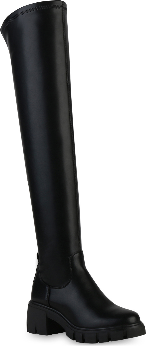 VAN HILL 838109 Overkneestiefel Damen Leicht Gefütterte Overknees Stiefel Profil-Sohle (schwarz)