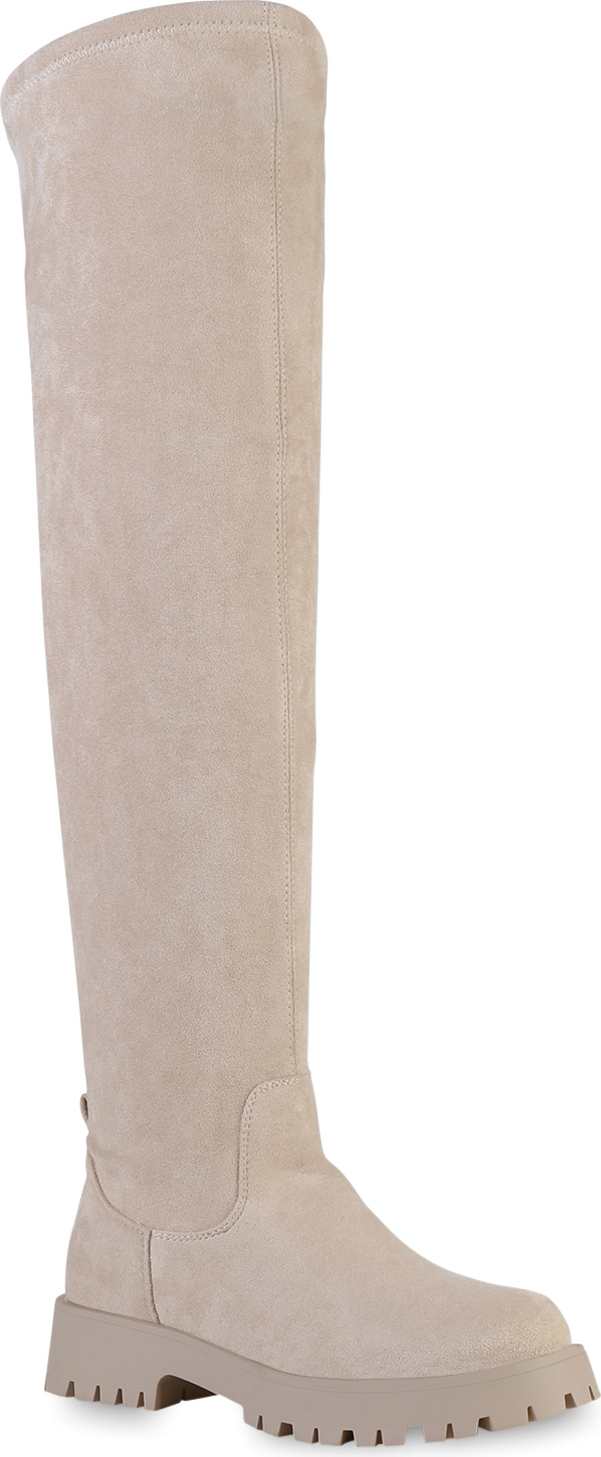 VAN HILL 838114 Overkneestiefel Damen Leicht Gefüttert Overknees Stiefel Profil-Sohle (beige)