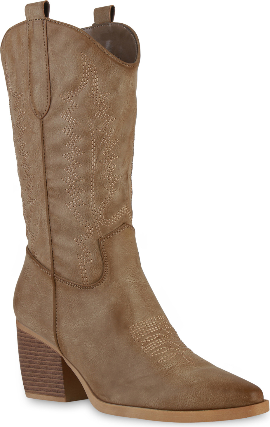 VAN HILL 838384 Cowboystiefel Damen Stiefel Cowboystiefel Holzoptikabsatz Stickereien (braun)