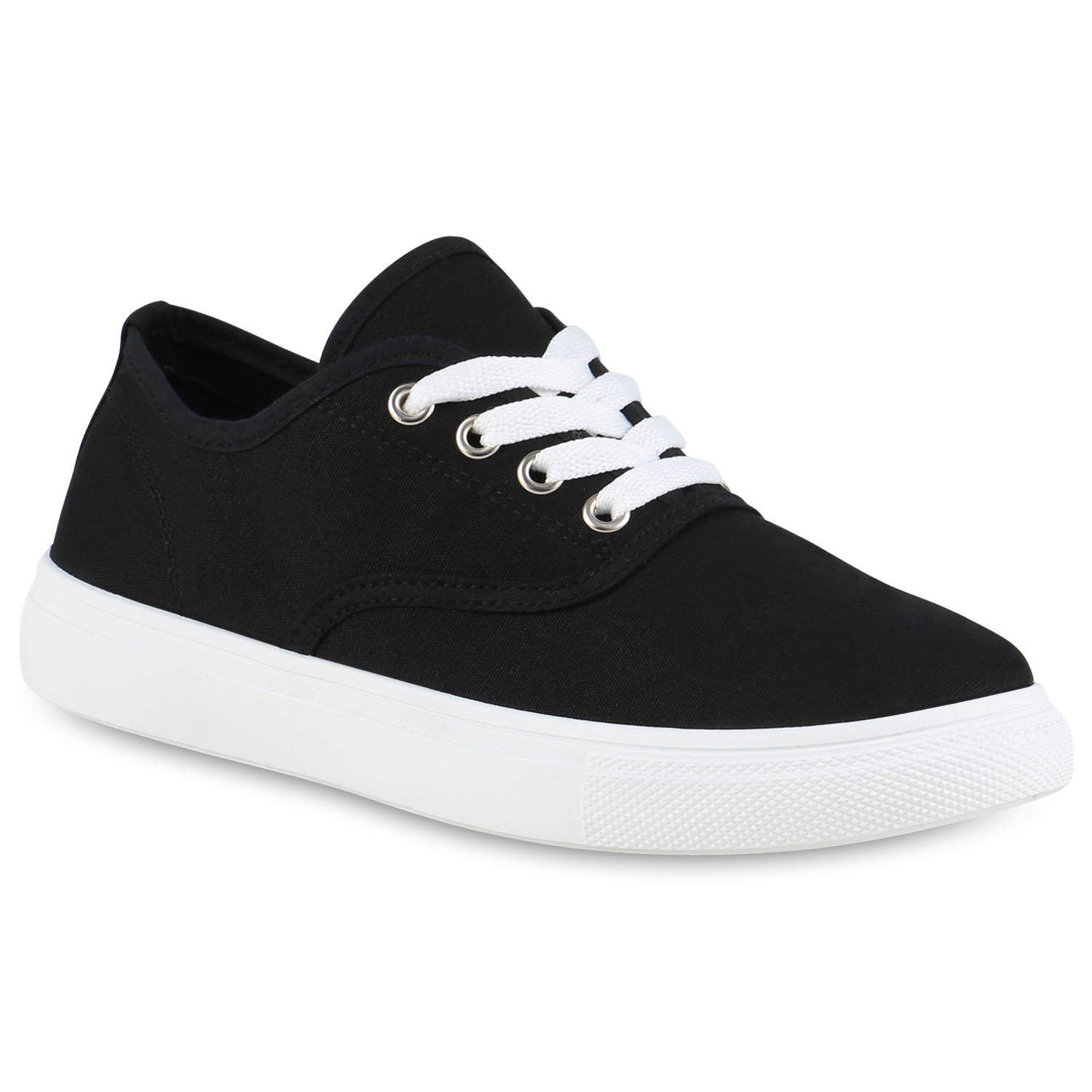 VAN HILL 838962 Sneaker Damen Sneaker Low Schnürer Bequeme Basic Stoff (schwarz)
