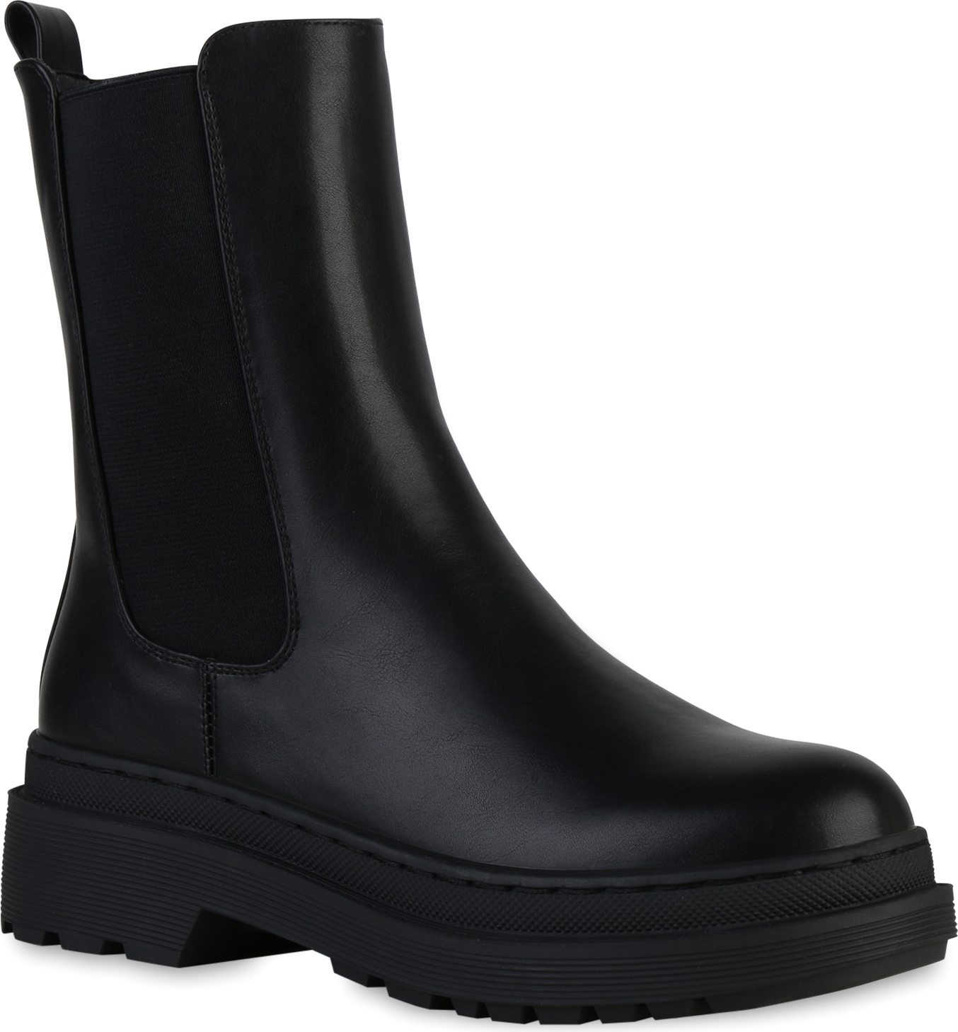 VAN HILL Damen Leicht Gefütterte Plateau Boots Profil-Sohle Schuhe 839380, Farbe: Schwarz, Größe: 39