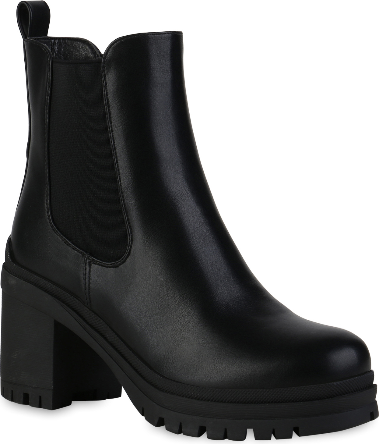 VAN HILL 839435 Chelseaboots Damen Chelsea Boots Stiefeletten Plateau Vorne Profil-Sohle (schwarz)