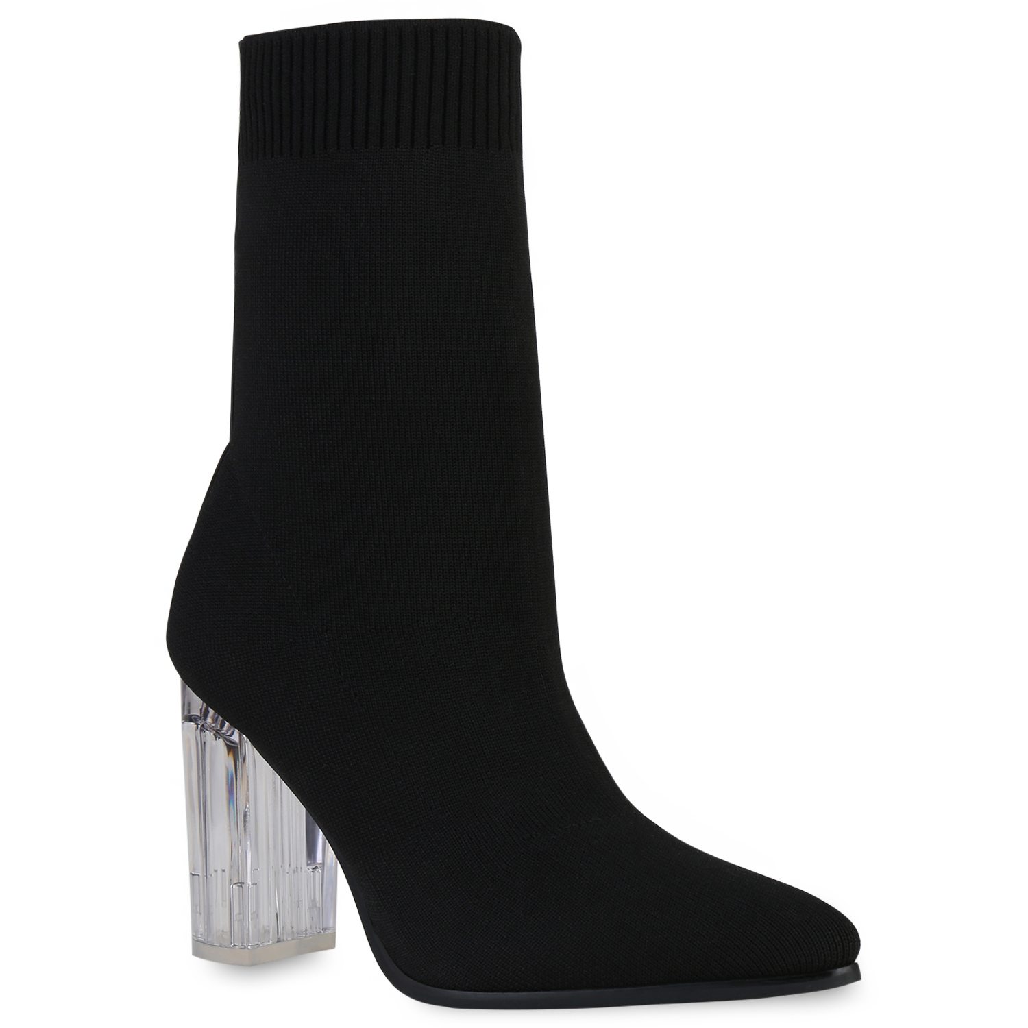 VAN HILL 839470 Schlupfboots Damen Schlupfstiefeletten Stiefeletten Stiefel Strick Stoff- (schwarz)
