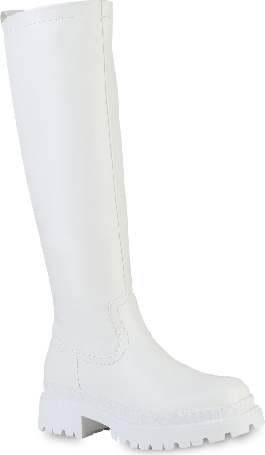 VAN HILL 839544 Plateaustiefel Damen Leicht Gefütterte Plateaustiefel Stiefel Profil-Sohle (weiß)