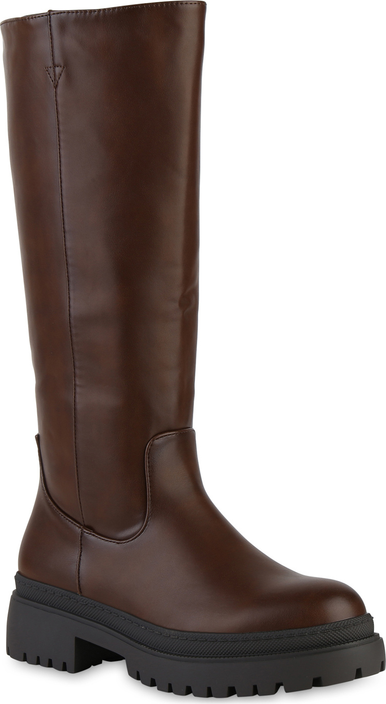 VAN HILL 839581 Plateaustiefel Damen Leicht Gefütterte Plateaustiefel Stiefel Profil-Sohle (braun)
