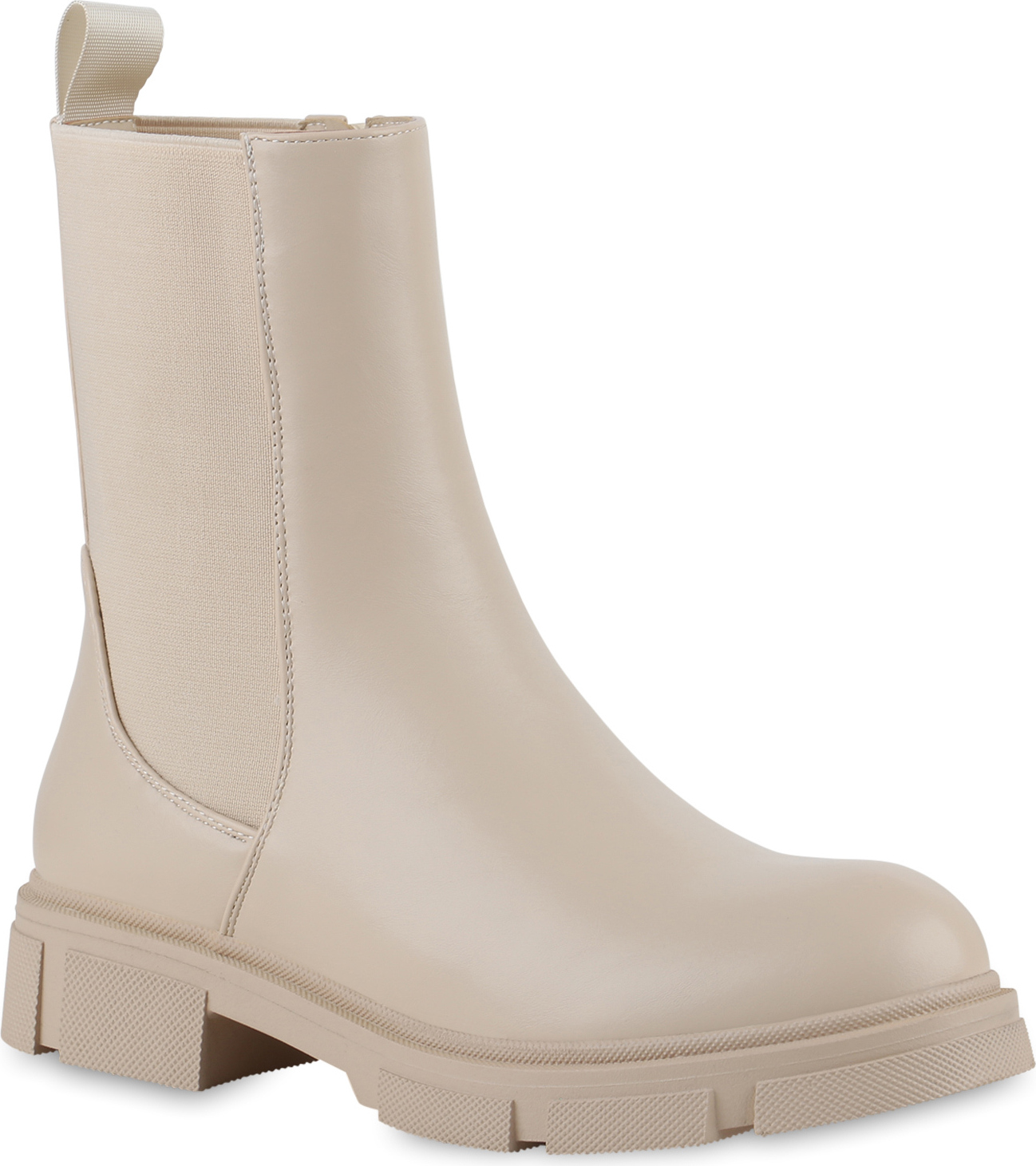 VAN HILL 839630 Stiefelette Damen Leicht Gefüttert Klassische Stiefeletten Profil-Sohle (beige)