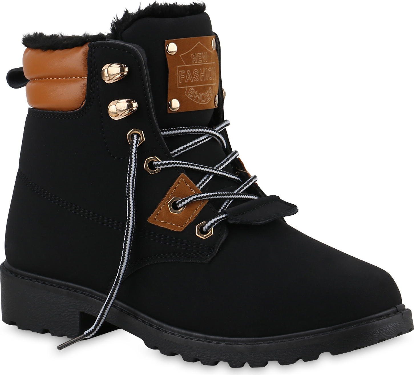 VAN HILL 839642 Stiefelette Damen Gefütterte Worker Boots Stiefeletten Bequeme Outdoor (braun/schwarz)