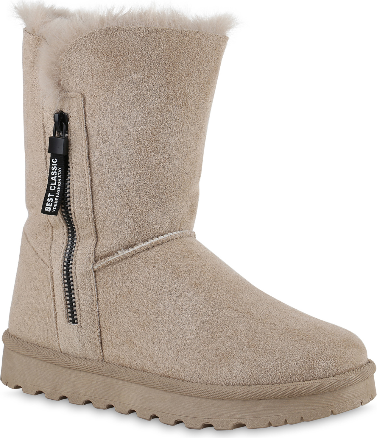 VAN HILL 839666 Winterstiefelette Damen Warm Gefütterte Winter Boots Stiefeletten Kunstfell (beige)