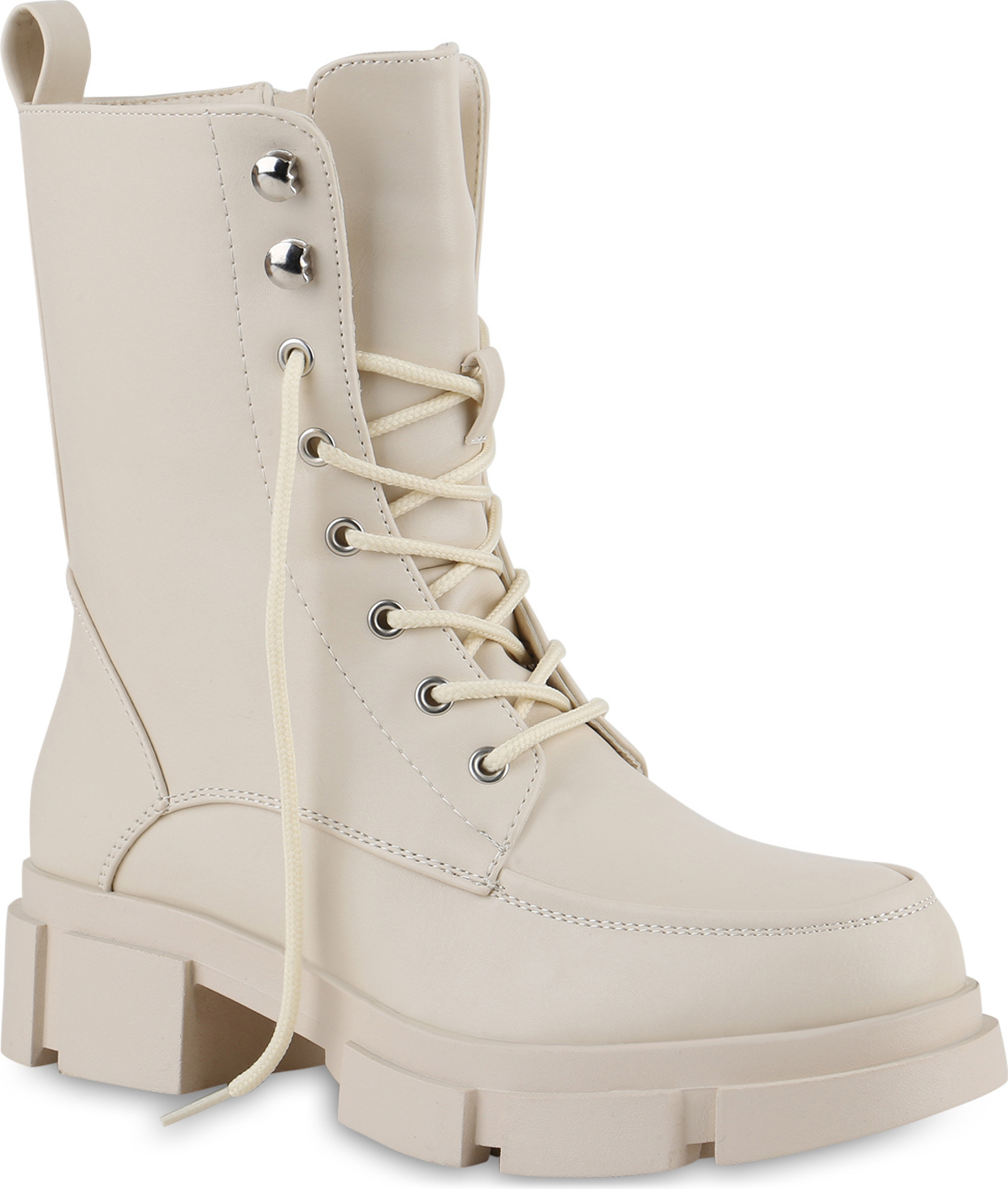 VAN HILL 839727 Schnürstiefelette Damen Stiefeletten Leicht Gefüttert Schnürstiefeletten Blockabsatz (beige)