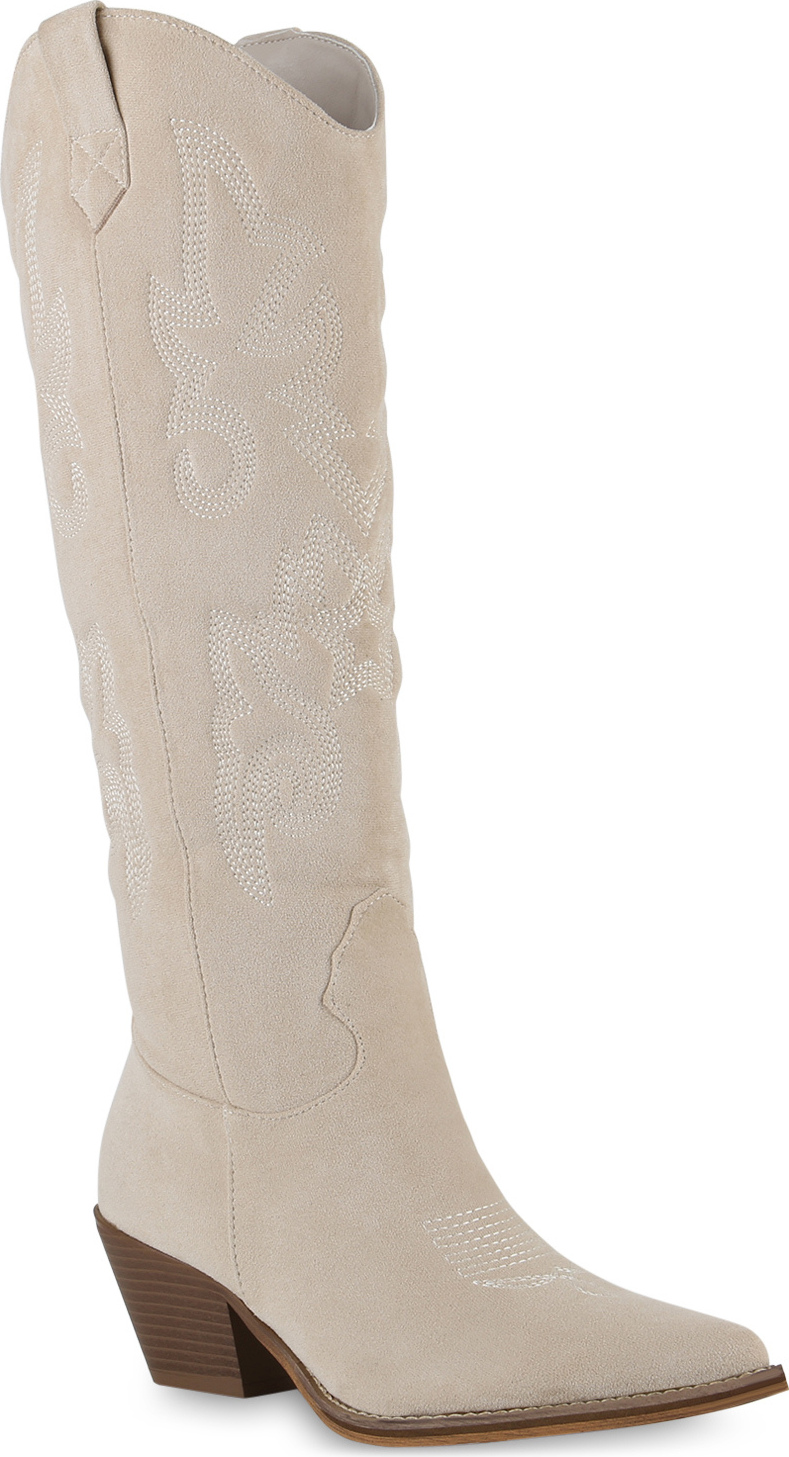 VAN HILL 839869 Cowboystiefel Damen Leicht Gefütterte Cowboystiefel Stiefel Stickereien (beige)