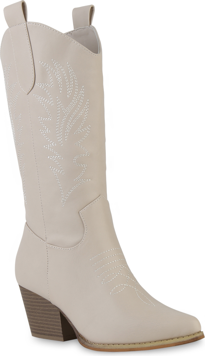 VAN HILL 839874 Cowboystiefel Damen Stiefel Cowboystiefel Stickereien Holzoptikabsatz (beige)