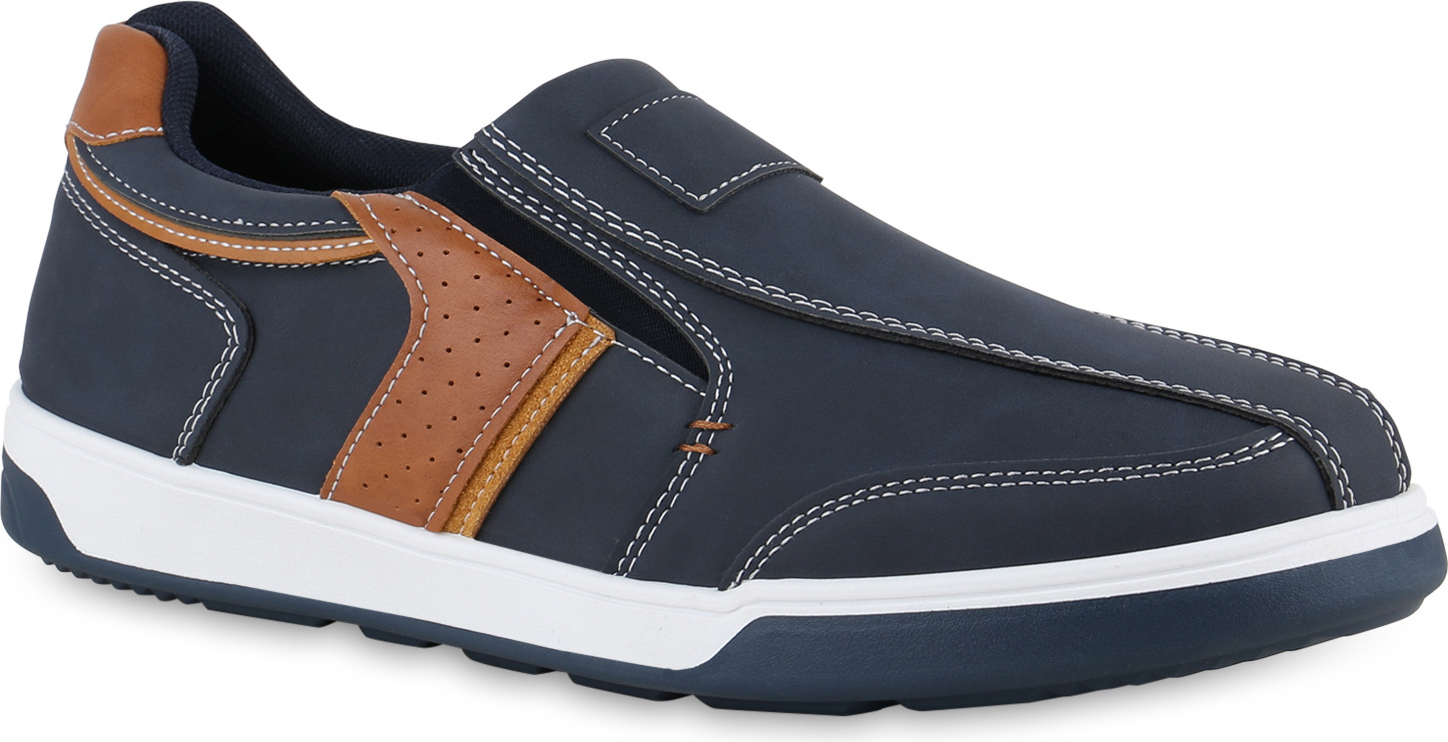 VAN HILL 840002 Slip-On Sneaker Herren Sneaker Slip Ons Slippers Bequeme Profil-Sohle (blau/braun/bunt)