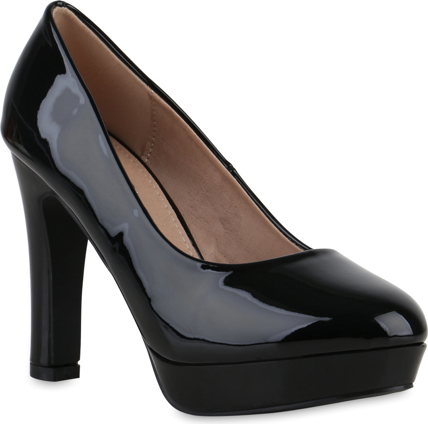 VAN HILL 840023 Pumps Damen Klassische Pumps Stiletto Plateau Vorne Lack (schwarz)