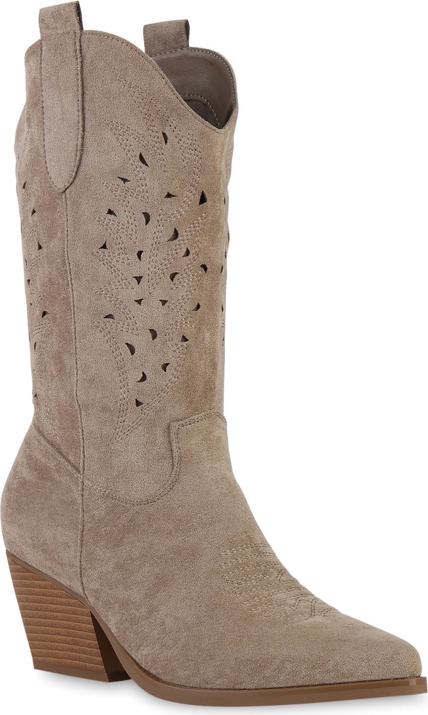 VAN HILL 840054 Cowboystiefel Damen Cowboystiefel Stiefel Stickereien Holzoptikabsatz (grün)