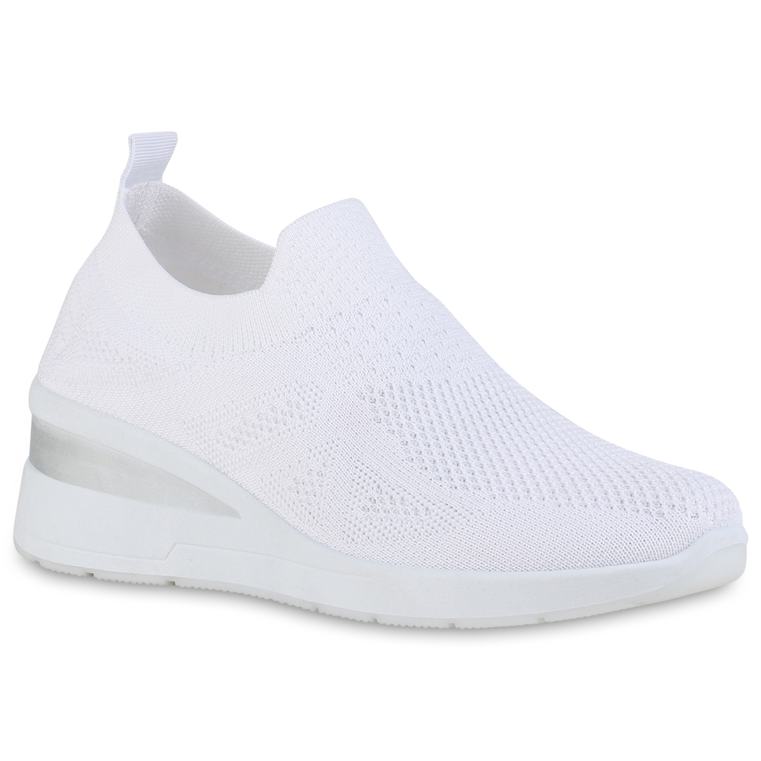 VAN HILL 840165 Wedgesneaker Damen Sneaker Wedges Keilabsatz Strick Profil-Sohle Stoff- (weiß)