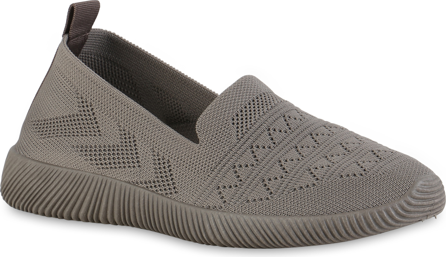VAN HILL 840201 Laufschuh Damen Sportschuhe Slip Ons Sportliche Strick Profil-Sohle (braun)
