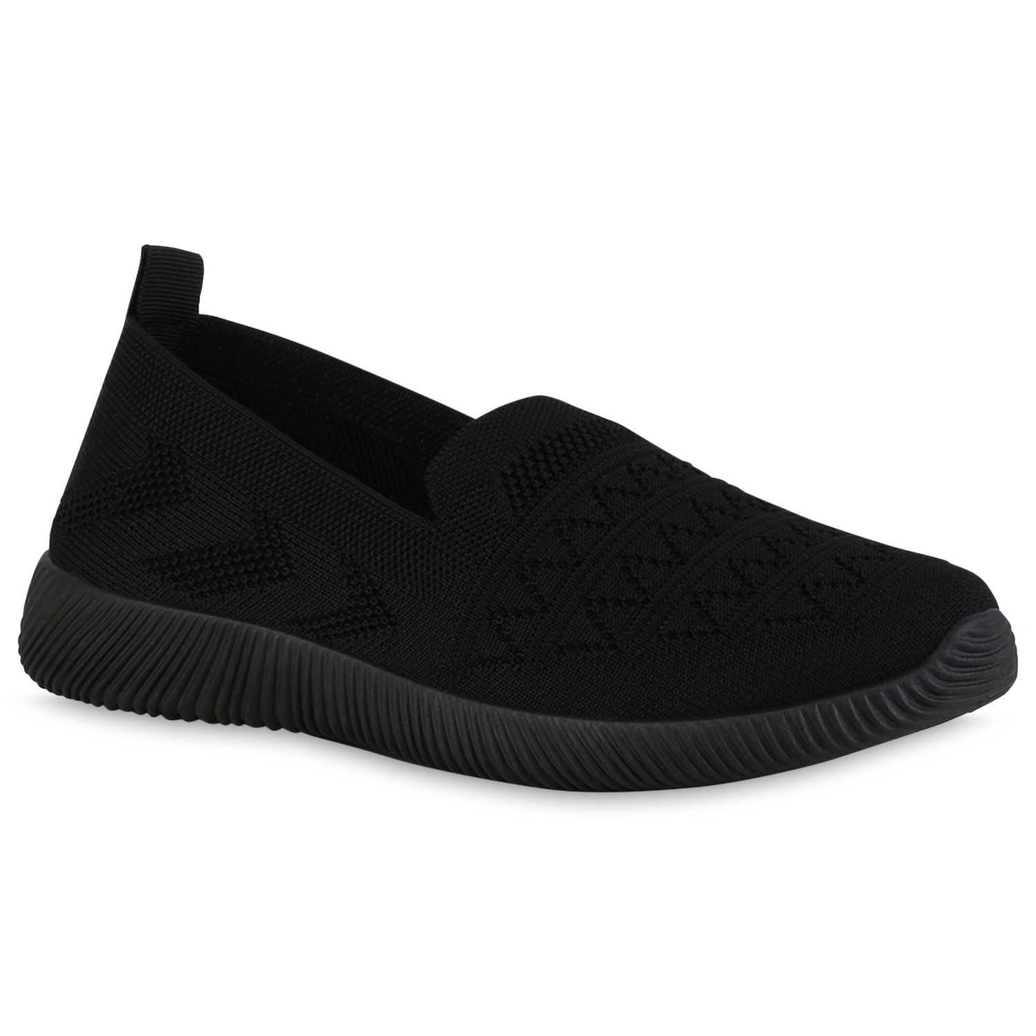 VAN HILL 840201 Laufschuh Damen Sportschuhe Slip Ons Sportliche Strick Profil-Sohle (schwarz)