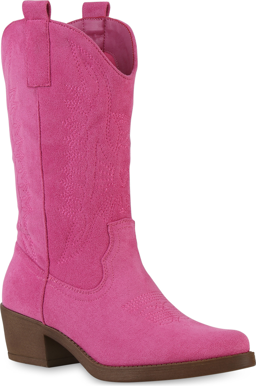 VAN HILL 840208 Cowboystiefel Damen Cowboystiefel Stiefel Stickereien Holzoptikabsatz (rosa)