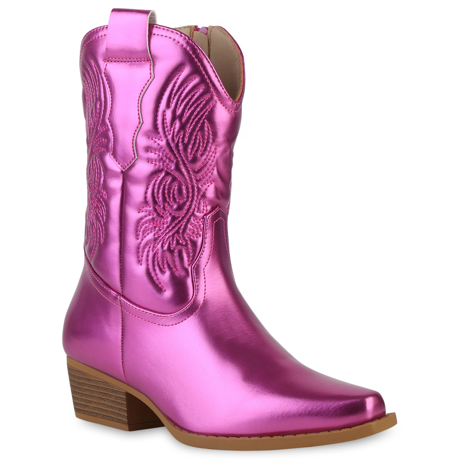 VAN HILL 840254 Cowboy Boots Damen Cowboy Boots Stiefeletten Stickereien Holzoptikabsatz (bunt)