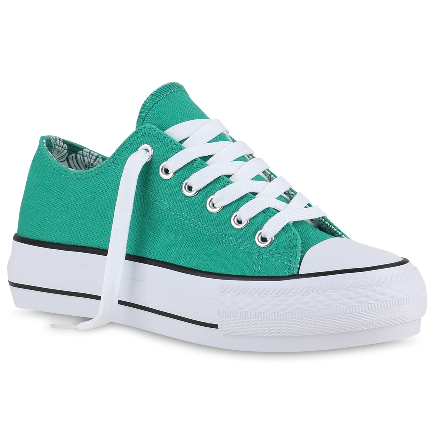 VAN HILL 840380 Sneaker Damen Sneaker Low Plateau Schnürer Basic Stoff Schnür- (grün)