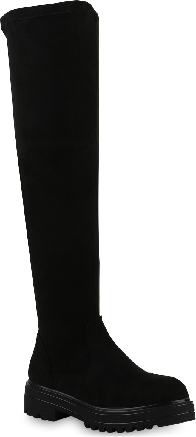 VAN HILL 840519 Overkneestiefel Damen Overknees Stiefel Plateau Vorne Profil-Sohle (schwarz)