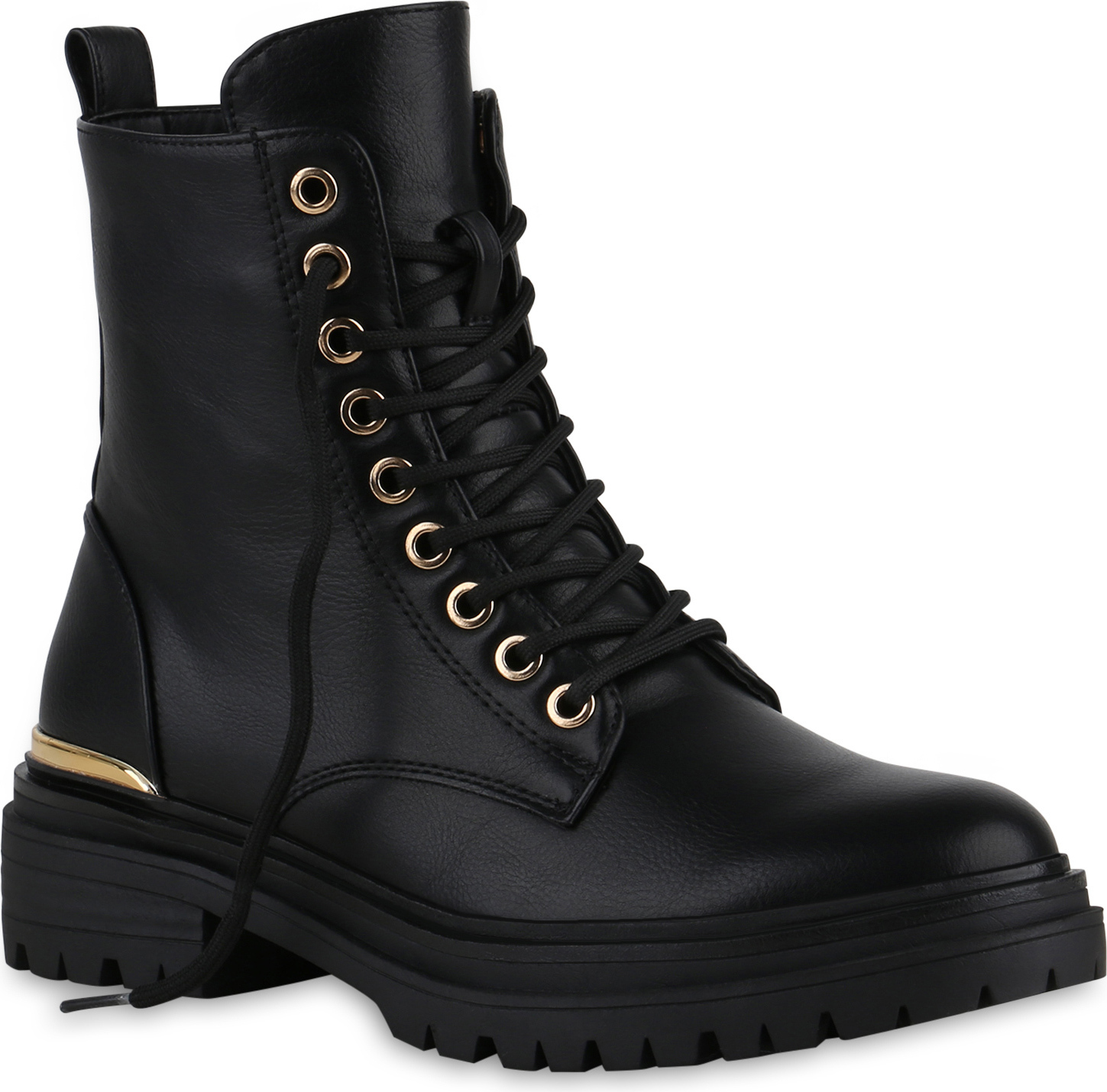 VAN HILL 840526 Schnürstiefelette Damen Schnürstiefeletten Stiefeletten Profil-Sohle Schnür- (schwarz)
